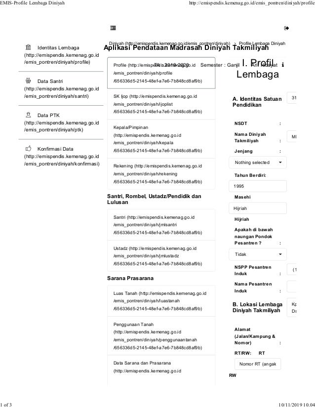 Itu hanya beberapa masalah atau kendala yang terjadi pada aplikasi emis online. Emis atau education education management information system, adalah sistem informasi data yang dikembangkan oleh ditjen pendidikan islam kementerian agama ri. Cara download dan instal aplikasi feeder emis, judul ini terasa agak menyesatkan. Bagi madrasah yang tidak melakukan update data pada emis maka jangn berharap akan dapat mendapat bantuan sarana prasarana dan bantuan lainnya dari kementerian agama. Emis bagi lembaga madrasah diniyah takmiliyah. Sudah sesuai dengan email yang didaftarkan sebagai operator madrasah atau belum. Dashboard berisikan data pada semester yang sudah dan yang sedang berjalan. Situs ini sebagai pusat informasi pelayanan ptk kemenag. Tidak ada untuk tingkat smp ataupun mi. Sehingga pengisian data nanti dilakukan sepenuhnya secara online. Yaitu melalui emis online untuk upadate data semester genap. Nanti siswa dari emis madrasah akan diambil databasenya dan masuk pada aplikasi verval pd. Padahal mutasi siswa tentunya bisa juga terjadi di jenjang madrasah ibtidiyah maupun madrasah tsanawiyah.